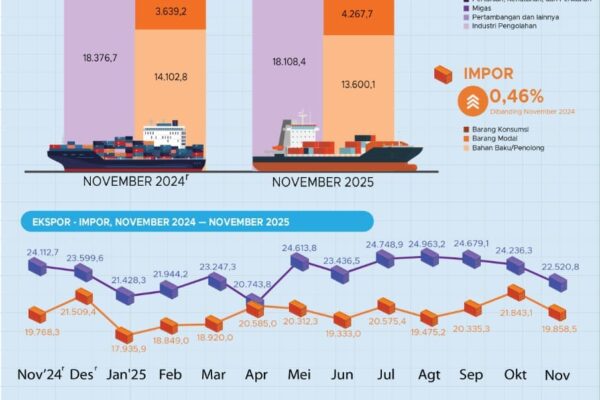 JAKARTA, LENSA-INDO.COM — Aktivitas ekspor dan impor nasional terpantau berjalan stabil sepanjang November 2025. Arus barang di pelabuhan-pelabuhan utama tetap lancar meski dihadapkan pada dinamika ekonomi global. Kelancaran distribusi dinilai penting dalam menjaga ketersediaan bahan baku industri serta pasokan kebutuhan masyarakat. Pemerintah terus memantau jalur logistik nasional guna mencegah hambatan distribusi. Stabilitas sektor perdagangan menjadi…